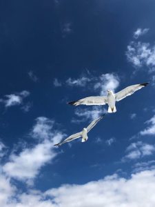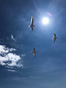 Φλερτ της ομπρέλας με τον ήλιο τον απίθανο λες και είναι Νοτίου και όχι Βορείου Ισπανίας, ασυγκράτητο πάθος από καμιά δεκαριά θηλυκούς γλάρους που αναποδογύρισαν σε κατακόρυφο νεαρό ανυποψίαστο τουρίστα που βρέθηκε εκεί στη στιγμή της βακχικής έξαψης κι ένα σωρό ακόμα πολύτιμες-στιγμές-πετράδια…